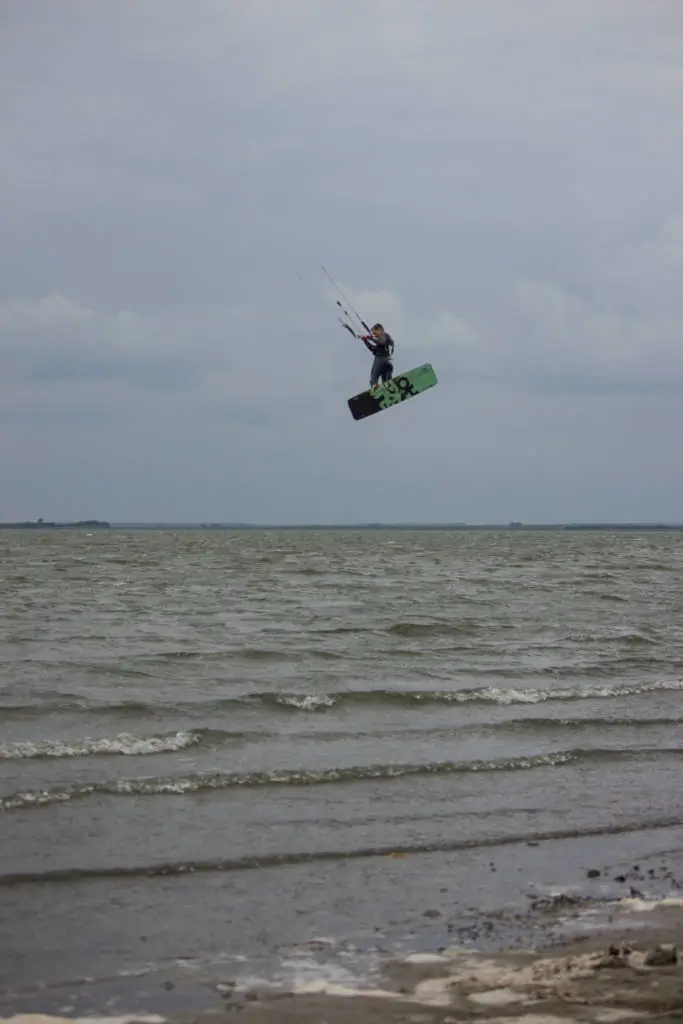 Долго мелко, что хорошо для первоначального обучения. Стоять с кайтом в воде очень комфортно и безопасно. В целом место на 4 с плюсом и рекомендуется к посещению всем, кроме длинных плавников)