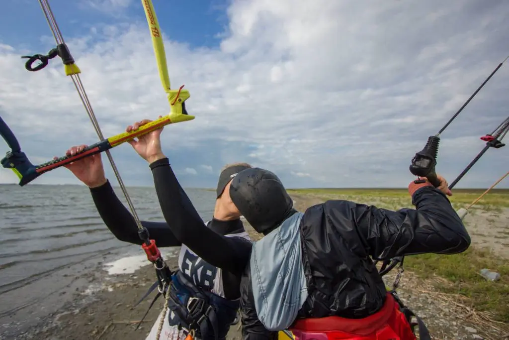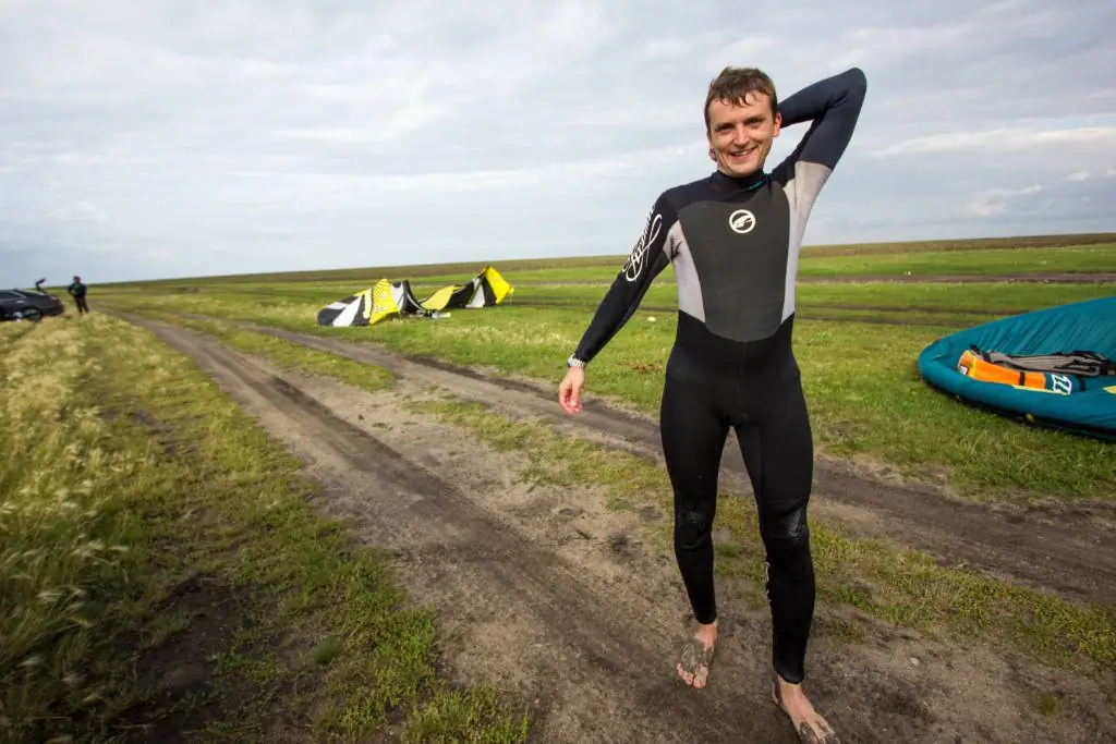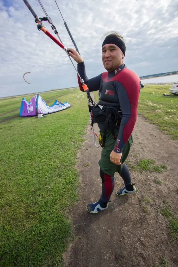 Несколько слов хотел написать по поводу самой площадки. Озеро, как всегда, (с) «В одной плоскости с Землёй», расположено практически в поле, по виду напоминающее Казахстанские степи. Ветер ровный, усиления комфортные, очагов турбулентности практически нет. Заход в воду не самый приятный, из-за камней на берегу и в воде, но место было выбрано под северный ветер на юго восточной точке озера. Как пояснила Оля обычно ребята встают северней.