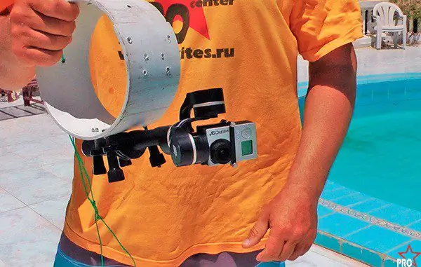 Для крепления под камеру, на современный плоский кайт, хорошо подходит разрезанная пластиковая труба с внутренним диаметром около 16 см.