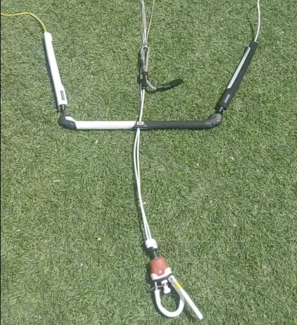 Одна силовая и страховочная стропы проходят через кольцо со скользящим узлом. Далее идут три дополнительные стропы, которые укорачиваются при затяжке триммера для компенсации натяжения.