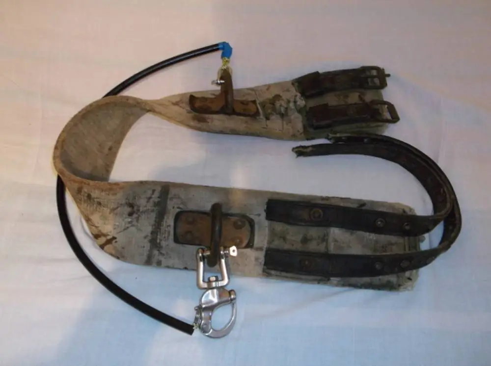 В итоге мне в руки попал старый престарый страховочный пояс для электромонтажников. У пояса было еще пара цепей с карабинами, которые были срезаны. Этот пояс широкий и достаточно удобно сидит на талии.