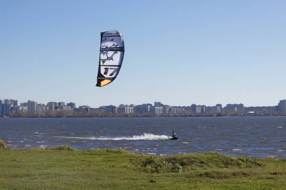 В целом удалось протестировать кайт в разный условиях и хотелось бы поделиться в первую очередь именно этой информацией. Также вижу смысл проводить параллель с Турбиной прошлого 2011 года, хотя общего в них мало. Наверное только цифра 17 на куполе. Начну с нижнего ветрового диапазона. Кайт летит, не падает!, начиная с 1,5 м/с у земли! Стоит безусловно дифференцировать высоту полета кайта, а это + 27 метров строп от райдера. Стабильно себя ведет в зените и приближенных к 12 положениях. Если кайт валиться ниже, то поднять наверх его можно только кайтлупом. На воде в 1-2 метра в секунду чуда не происходит и даже на больших дверях и директах движение вряд ли возможно. В заявленные 3 м/с ты уже едешь и свободно вырезаешся пока другие курят бамбук. Оговорка в следующем. Для катания в такой слабый ветер необходимо иметь лайтвинд доску. Либо директ. На стандартных твин типах движение было, но только в слив. Зимой думаю что все намного проще и начать скольжение уже можно если кайт взлетел и не падает. Но опять же надо пробовать.