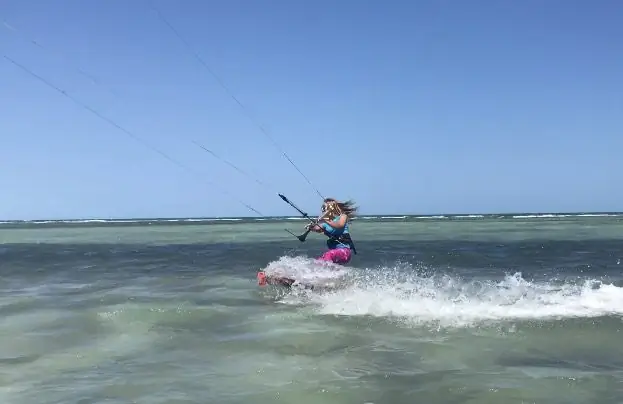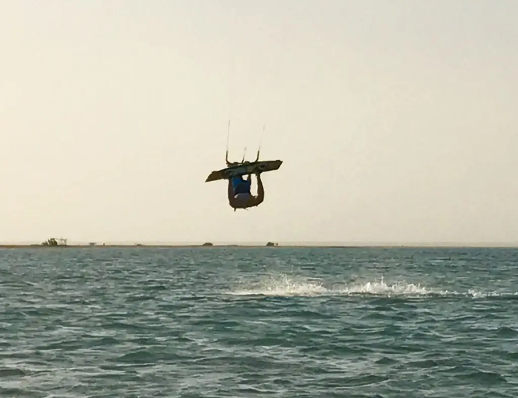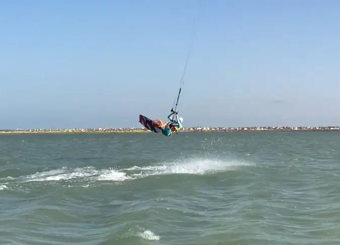 На второй день стояло 12-14м/с, и мы укатывались на 8 и 10м2 кайтах на досках 139 и 130см соответственно, в лагуне. Ближе к вечеру на 10ке пришлось затянуть триммер.