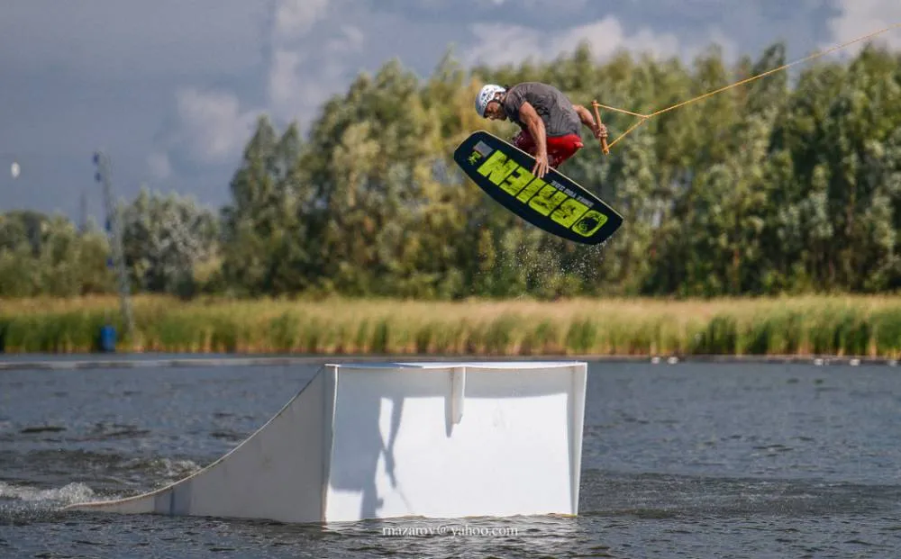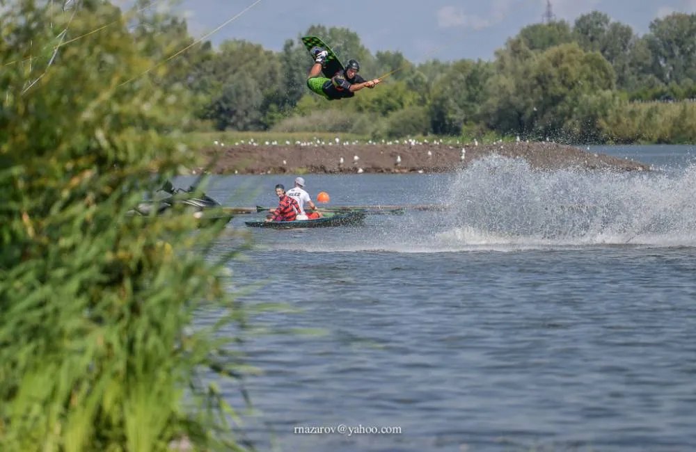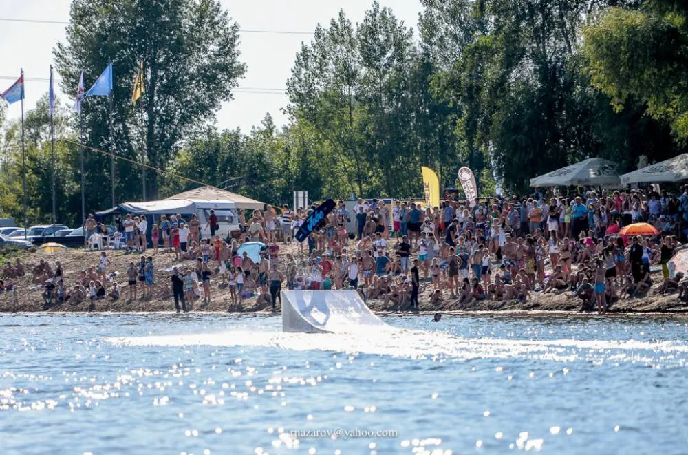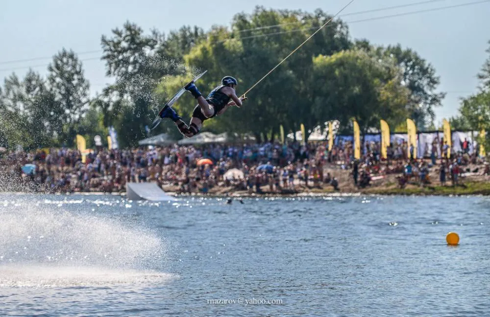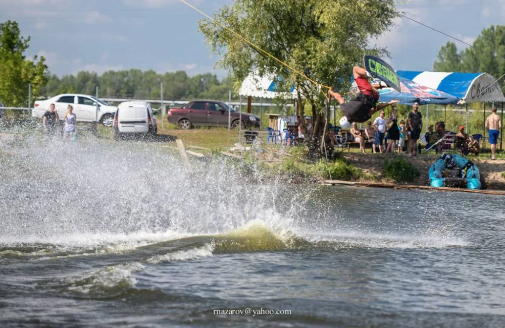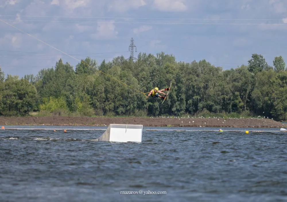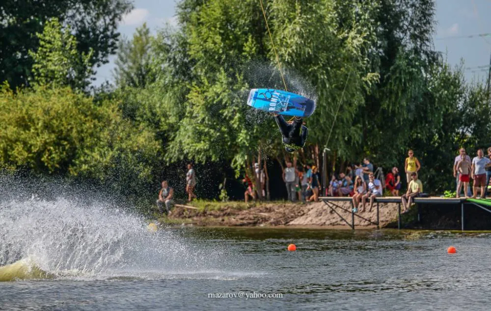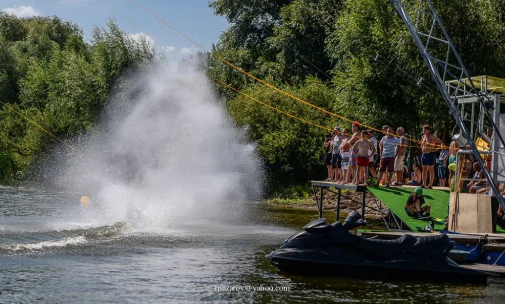 9 августа — открытие вейк-парка. Официоз и разрезание ленточки в 15-00. Сразу после этого мы начинаем показательные выступления. Примерно 45 минут на одном дыхании мы показывали что умеем, а народ верещал от восторга. Особенно буйствовали зрители напротив кикеров, это только добавляло энергии райдерам. Очень необычно было, когда нескольких спортсменов, навернувшихся с неудачных попыток на трамплине не отпускали зрители на берегу — всем надо было сфоткаться ))).
